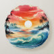 Almofada Redonda Estilo de Tinta Japonesa Art Ocean Waves Sunset Pa