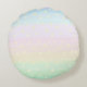 Travesseiro redondo com estrelas em gradiente de cor pastel.