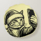 A cool cat in a Santa hat snaps a selfie in style. This round pillow blends holiday cheer with modern humor—perfect for gifting or cozy decor.