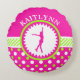 Travesseiro decorativo redondo personalizado do patinagem artística que caracteriza um design do rosa, do verde, e o branco das bolinhas. Use o campo feito sob encomenda do texto para adicionar um nome antes que você peça. Ou se você prefere, deixe o vazio do campo do texto para nenhum nome. Você pode igualmente usar "personaliza-o" botão para mudar a pia batismal!
