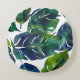 Almofada Redonda Filodendron Botânico de Folhagem Verde e Azul