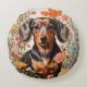 Almofada Redonda Flores De Dachshund Castanho E Cosmos