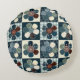 O padrão de travesseiro de campo/país/fazenda é composto por um gráfico repetido de 4 painéis de flores de botão de retalhamento em tons de azul com cores complementares.