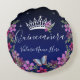 Almofada Redonda Flores e Borboleta Quinceanera Azul