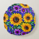 Almofada Redonda Flores Roxas e Girassóis Amarelos Floral