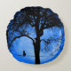 Almofada Redonda Gato numa Lua Azul Fio