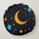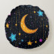 Almofada Redonda Grande lua crescida e numerosas estrelas