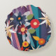 O design travesseiro apresenta pequenas formas ousadas de abstrato, como flores coloridas, folhas e cristais dispersos em tamanhos e ângulos variados, criando um padrão moderno e assimétrico que adiciona um toque dinâmico e artístico a qualquer espaço.