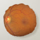 travesseiro redondo com íris de avelã numa das faces e vista oftalmológica do nervo macular e óptico da retina no anverso