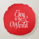 This holiday throw pillow is shown with a Joy to The World print.