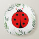 Almofada redonda da joaninha e folhas de planta verde. Ideal para todos. A joaninha é um símbolo universal de boa sorte! Ótimo para crianças e adultos!