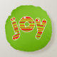 A palavra JOY é soletrada com riscas coloridas de vermelho e verde, e pontilhadas com estrelas brancas. Um presente de feriado, lembrança, doação e festa devem se destacar! Feliz Feriados!