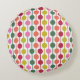 Adicione um pouco de alegria retrô ao seu lar com este travesseiro decorativo. O travesseiro redondo tem a palavra "JOY" expressa em letras verdes limões contra um fundo cor-de-rosa com um impressão geométrico de coordenação no verso.