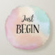 A gentle nudge to start where you are—this “Just Begin” quote design is set against a dreamy pastel watercolor background.