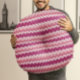 Almofada Redonda Lindo Design de Tricô Branco e Rosa