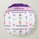 Louca por causa da ginástica em travesseiro com o nome do seu ginasta! Carregado com silhuetas coloridas de ginastas por toda parte!