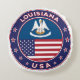 Crachá da Louisiana com bandeira da Louisiana e bandeira dos EUA com cores, forma arredondada. Emblema da Louisiana. Selo de Louisiana. Coleção dos Estados Unidos.