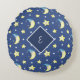 Almofada Redonda Lua de Mensagem Personalizada e Estrelas Azul