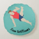 A ginástica deu travesseiro redondo com texto personalizável.