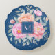 Almofada Redonda Monograma Aquarelas Peonias Rosas Azul Cor-de-rosa