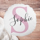 Almofada Redonda Monograma de Nome Personalizado Moderno - Rosa