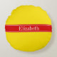 Almofada Redonda Monograma do Nome da Faixa Vermelha, Amarelo Sólid