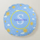 Almofada Redonda Monograma Personalizado Azul e Amarelo