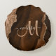 Adicione um toque de brilho e faça brilhar sua decoração residencial com este elegante travesseiro personalizado com um fundo marrom, acentuado com brilho sujo de ouro rosa. Personalize o seu monograma inicial em caligrafia manuscrita com o seu nome acima. Projetado apenas para você por Camisetas Extremas!