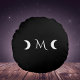 As luas minimalistas em crescente complementam seu monograma ou iniciais neste travesseiro decorativo redondo preto e branco de classe. ♡ Idyllfire