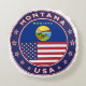 Crachá de Montana com bandeira de Montana e bandeira dos EUA cores, forma arredondada. Emblema de Montana. Selo de Montana. Coleção dos Estados Unidos.