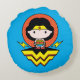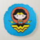 Almofada Redonda Mulher Maravilha Chibi com Bolinhas e logotipo