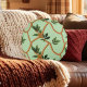 Almofada Redonda Padrão Castanho Verde da Corda Folha