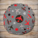 Almofada Redonda Padrão de Aviões da Cinza Negra Vermelha