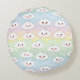 Almofada Redonda Padrão Monograma de Nuvens Kawaii Pastel Colorido