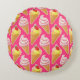 Almofada Redonda Padrão rosa Kawaii com sorvete de morango