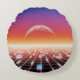Almofada Redonda Paisagem Retro-Futurística de Ondas Sintéticas