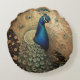 Almofada Redonda Pássaro Peacock Ouro Elegante