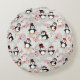 Almofada Redonda Pinguins de Natal Fofos com Monograma Personalizad