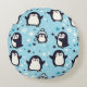 Almofada Redonda Pinguins Kawaii com flocos de neve de inverno sem