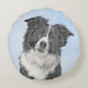 Almofada Redonda Pintura de Collie de Borda - Arte de Cachorro Orig
