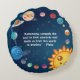 Este travesseiro decorativo redondo de personagem Netuno giro (kawaii) faz uma adição divertida a qualquer decor de quarto de astrônomo. Também tem o sistema solar atrás com a citação: "A astronomia força a alma a olhar para cima e nos leva deste mundo para outro." — Platão.