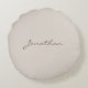 Cinza Moderna Elegante Nome da Trendy Marrom Script Plain Round Travesseiro decorativo.