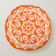 Esta mandala branca senta-se sobre um fundo laranja brilhante. A cor é brilhante e criativa. Parte da coleção Brosya Mandala. Este design pode não ser impressão tão brilhante quanto aparece on-line.