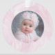 Almofada Redonda Primeira Foto de Natal do Bebê Floco de Neve Rosa