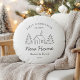Um travesseiro redondo coeso, neutro, com uma ilustração minimalista da casa e pinheiro de inverno e a manchete "Primeiro Natal em nossa Nova Casa." Personalize os nomes e o ano para um sotaque quente em primeira casa que funcione com qualquer decoração — do moderno ao agricultor. Perfeito no sofá, no banco de entrada, ou no quarto de hóspedes, e um bem pensado lar ou presente de férias para novos proprietários.