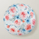 Travesseiro redondo com rosas cor-de-rosa delicadas e flores azuis, padrão aquoso.