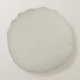 Round pillow with a subtle striped pattern is shown from front and back views. The light fabric has a soft, neutral tone, conveying a calm and cozy feel.