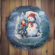 Almofada Redonda Snowman e Boy com Scarves Starry Night Monograma