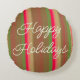 A striped painting brings festive energy to this happy holidays round pillow, with bold lines and flowing color creating a modern accent for seasonal decor. The abstract design adds movement and artistry, offering a creative way to highlight holiday traditions in a unique and expressive form.