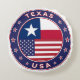 Crachá do Texas com bandeira do Texas e bandeira dos EUA, cores, forma arredondada. Emblema do Texas. Selo do Texas. Coleção dos Estados Unidos.
